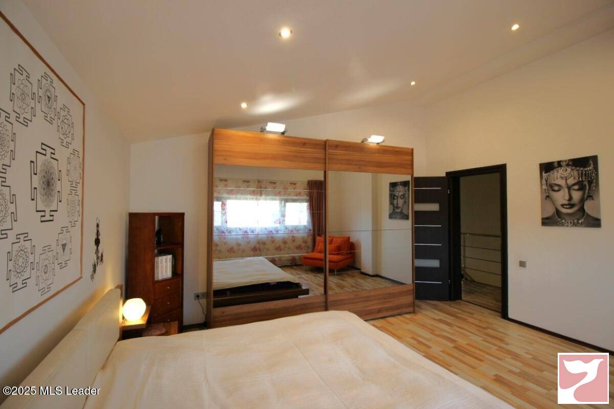 POPESTI-LEORDENI, SF. AGNES, VILA 2010, P+1+M, 216 MP, CURTE 138 MP. Pozitionata excelent pe strada Sf. Agnes 62A, intr-o zona nou dezvoltata, la doar cateva minute de intrarea in Popesti Leordeni din Sos. Oltenitei. Vila solida cu spatii luminoase si bine proportionate, potrivita atat pentru locuinta cat si pentru utilizare mixta. Imobil modern dispus pe parter, etaj si mansarda si curte intima, functionala, pe trei laturi, cu doua locuri de parcare. Toate camerele au inaltime de minimum 3 m, living cu dining si bucatarie dotata si utilata complet de peste 56 mp, cu iesiri pe terasa si in curtea din spate, doua dormitoare uriase, hobby room 28 mp - fost studio de dans, 3 bai, ferestre generoase, scari de lemn masiv, termopan Salamander, AC, centrala proprie, alarma.