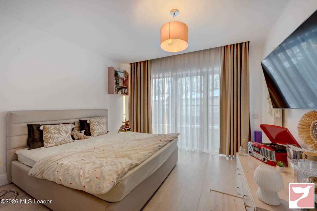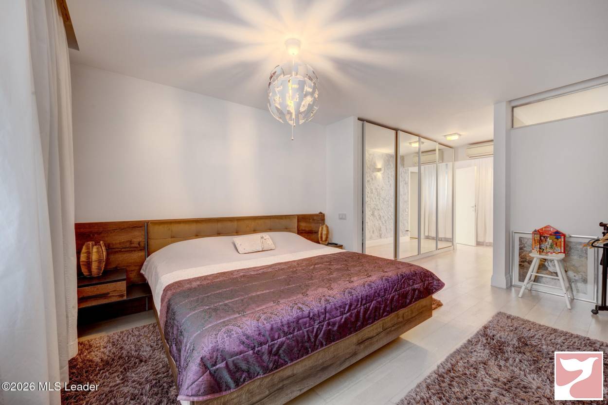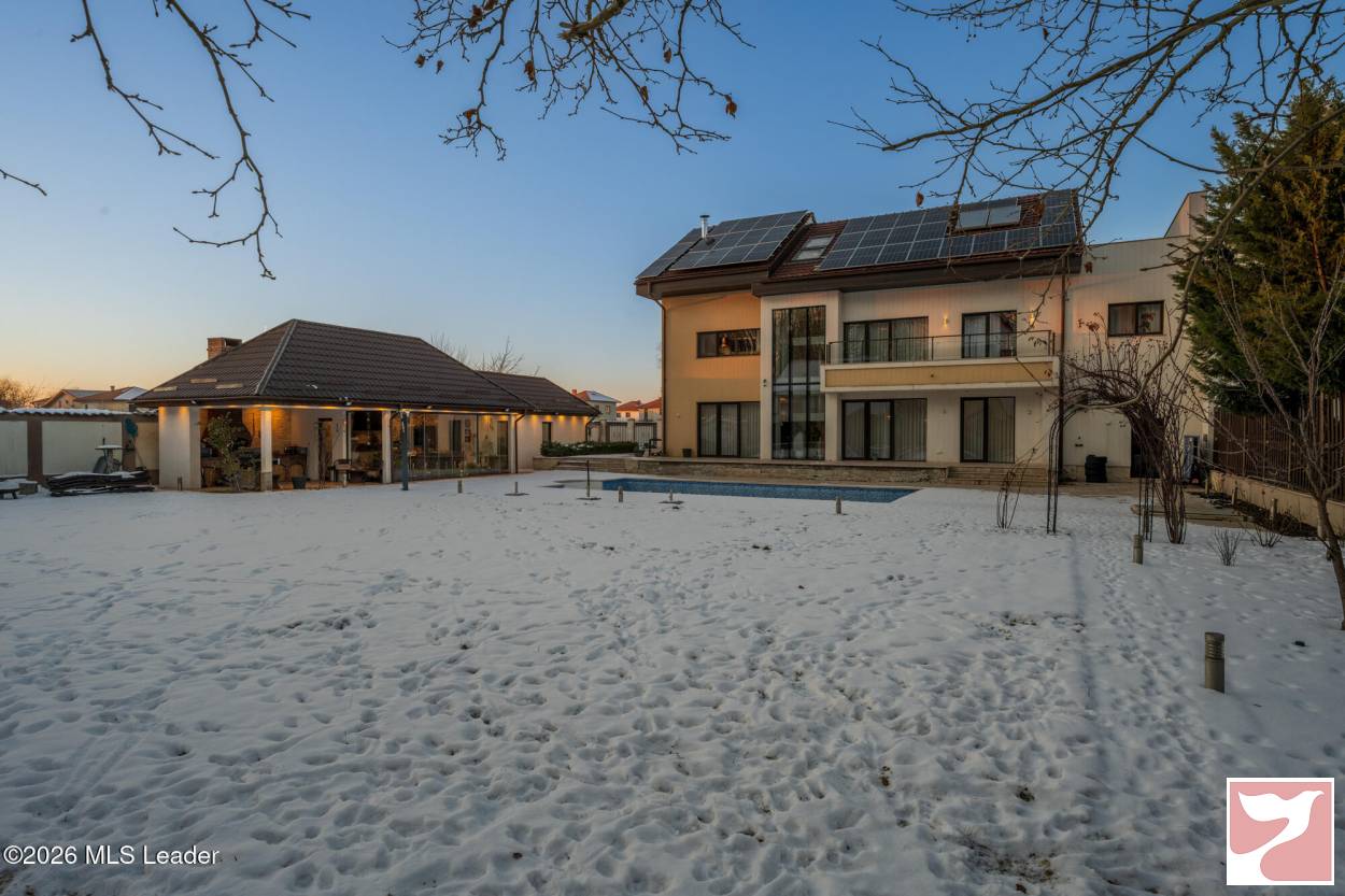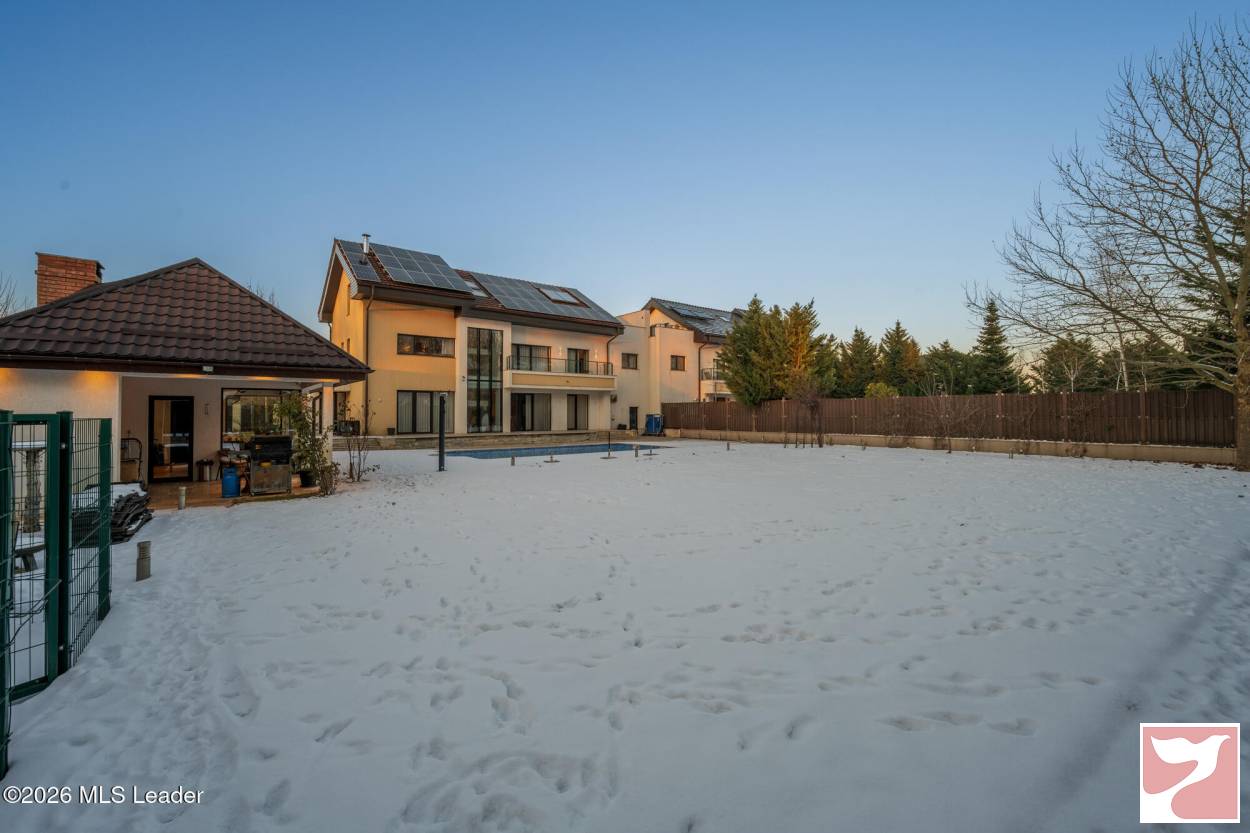 CORBEANCA - ROSE GARDEN, VILA 500 MP, LOT 1100 MP, LA CHEIE! Situata intr-un complex rezidential elegant si intim, cu acces direct din soseaua principala si acces imediat la DN 1 si A 0. Vila contemporana, cu 5 dormitoare si bai en-suite, bucatarie mare, living superb cu scara interioara si suprafete vitrate mari, ideala pentru o familie ce isi doreste statut, spatii ample si prestigiu. Lot mare, amenajat peisagistic, piscina, foisor recent amenajat, sistem de irigatie, vedere la padure. Interior foarte spatios, spatii de depozitare, dressing-uri, garaj cu acces direct in casa, gym, panouri fotovoltaice de 25 kw, semineu.
