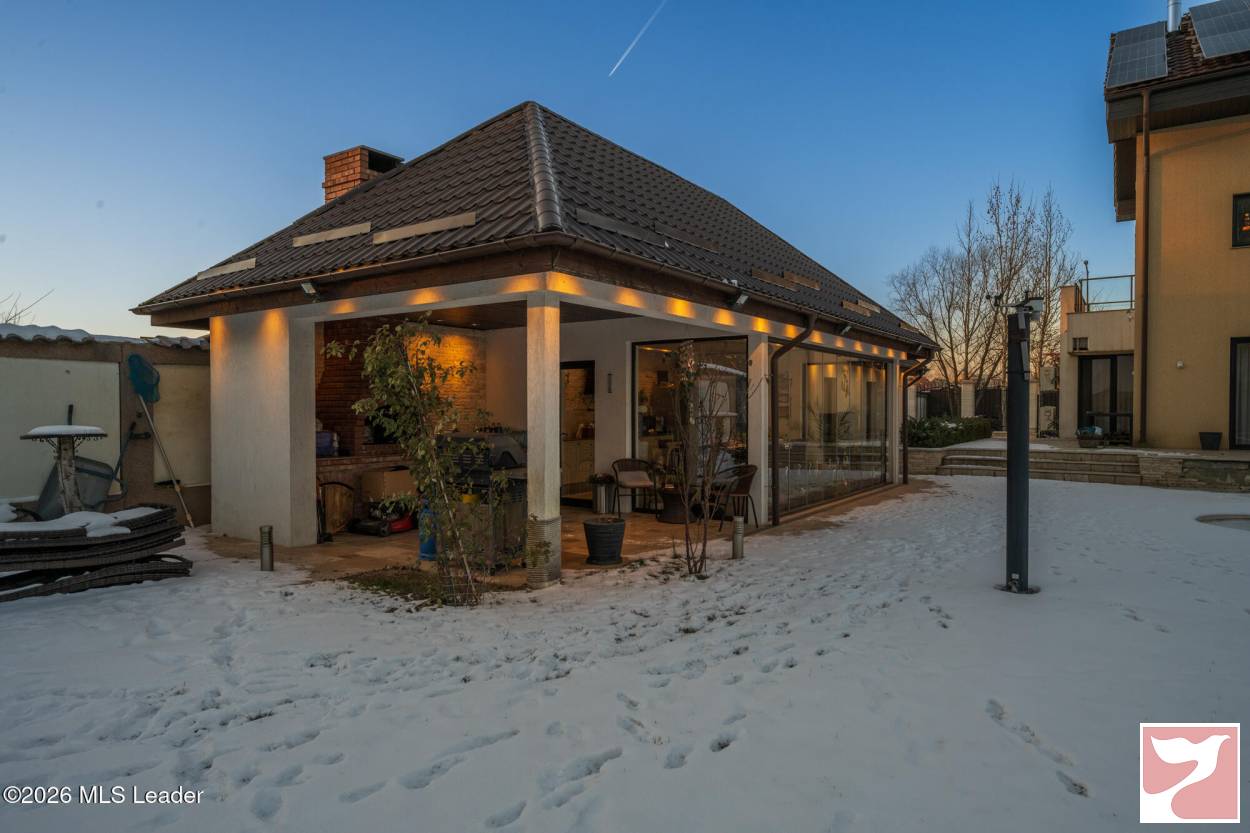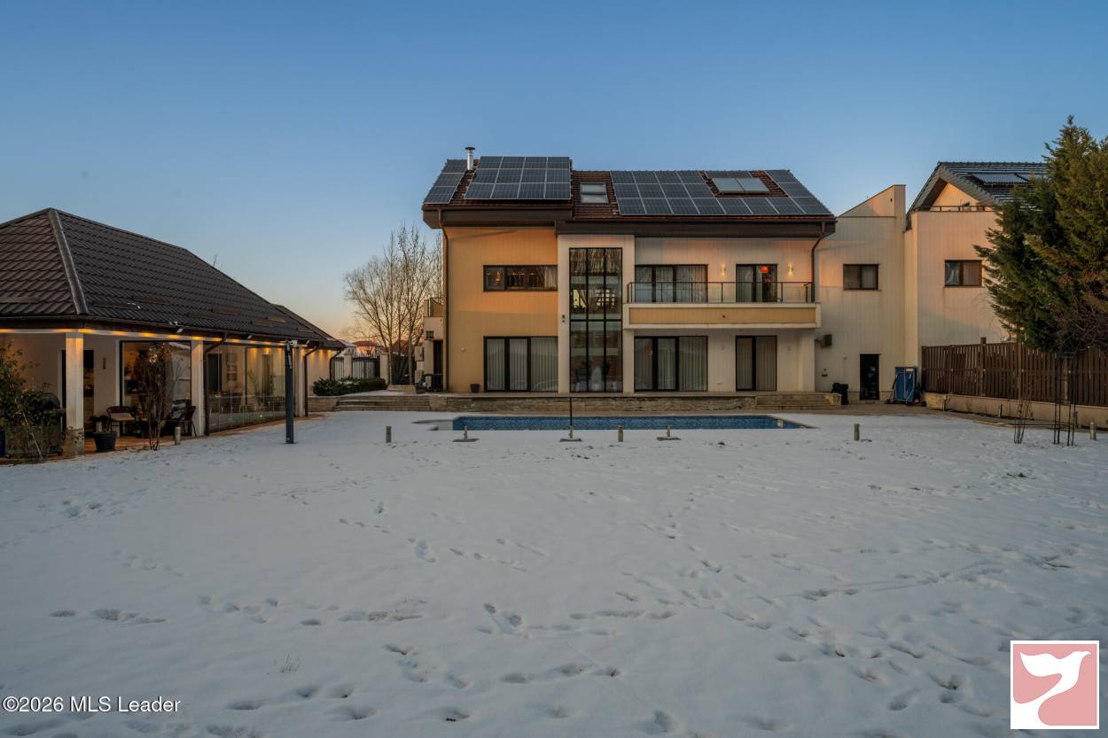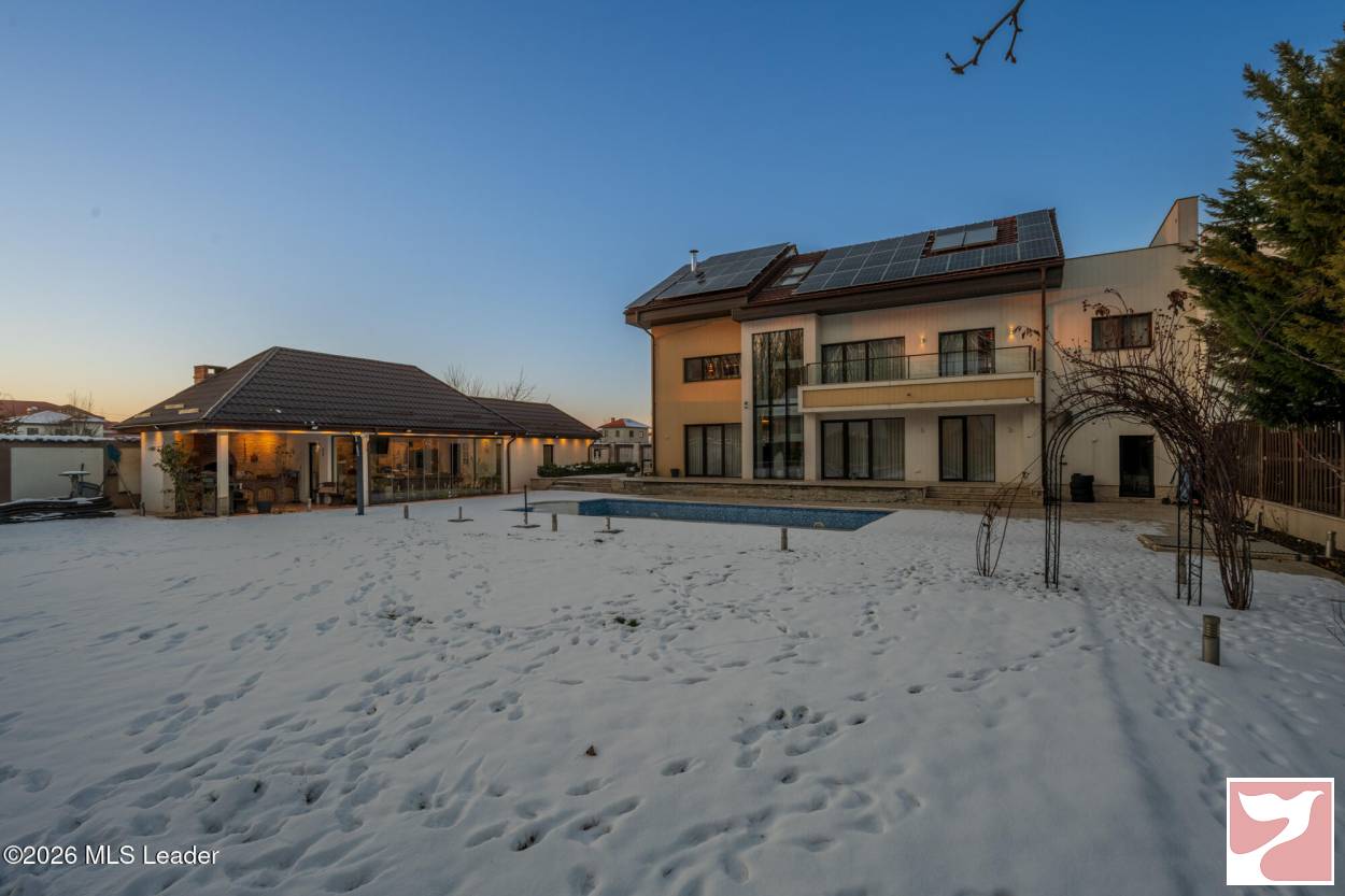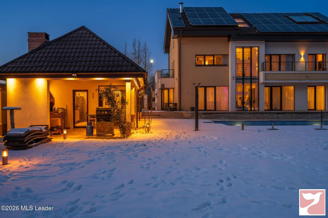 CORBEANCA - ROSE GARDEN, VILA 500 MP, LOT 1100 MP, LA CHEIE! Situata intr-un complex rezidential elegant si intim, cu acces direct din soseaua principala si acces imediat la DN 1 si A 0. Vila contemporana, cu 5 dormitoare si bai en-suite, bucatarie mare, living superb cu scara interioara si suprafete vitrate mari, ideala pentru o familie ce isi doreste statut, spatii ample si prestigiu. Lot mare, amenajat peisagistic, piscina, foisor recent amenajat, sistem de irigatie, vedere la padure. Interior foarte spatios, spatii de depozitare, dressing-uri, garaj cu acces direct in casa, gym, panouri fotovoltaice de 25 kw, semineu.