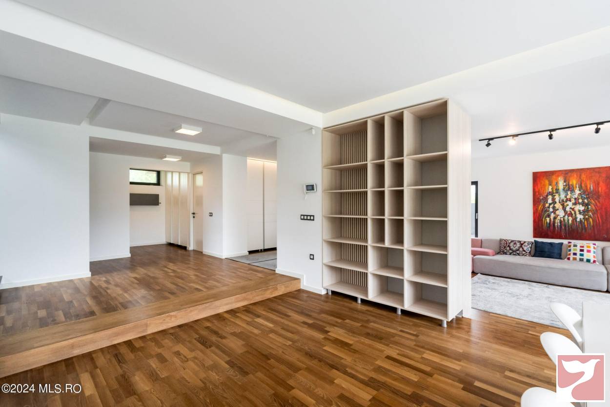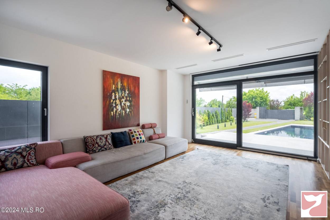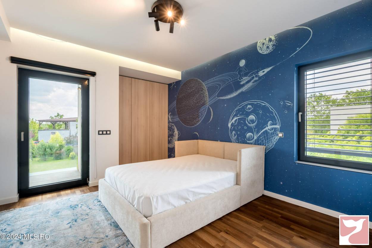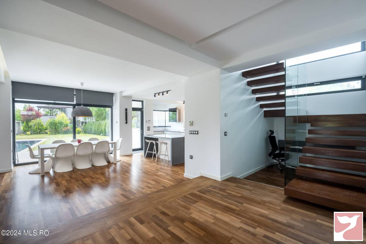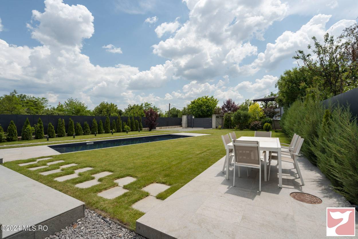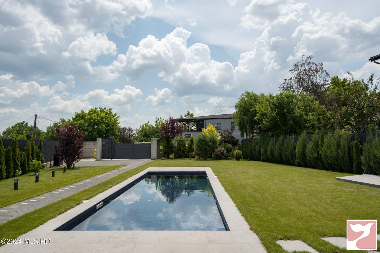 Designed for a family that values both space and aesthetics, this standalone villa located in Iancu Nicolae combines modern architecture with understated elegance.On the ground floor, the dining area and open-space kitchen form an exceptionally bright space, with a glazed facade opening onto the yard and pool.The living room, visually separated by architectural elements, remains connected to the entire daytime area, maintaining a sense of flow and transparency between the indoors and outdoors.The upper floor offers four well-proportioned bedrooms, complemented by two bathrooms and spacious walk-in closets.Among the auxiliary spaces are a sauna, storage areas, and carefully integrated details for daily comfort.