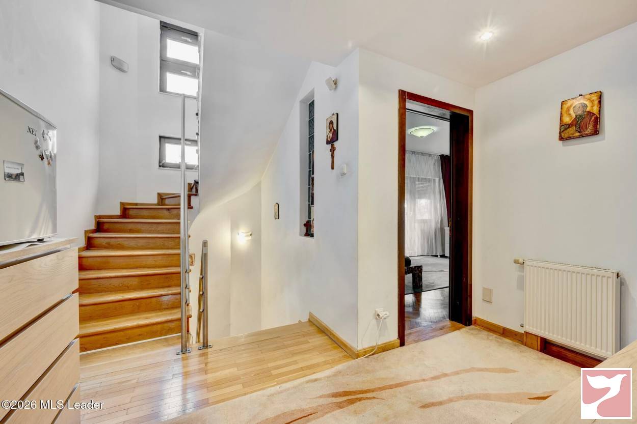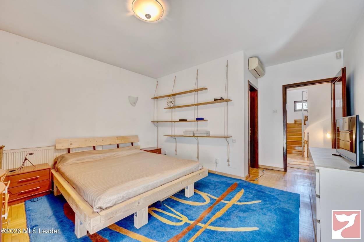 Demisol:Spațiu tehnic ce găzduiește centrala termică și incăperi utile pentru depozitare sau funcțiuni auxiliare.Parter: living generos și luminos, cu suprafețe vitrate ample, bucătărie bine poziționată, cu acces facil catre spalatorie si garaj, un birou util pentru lucru, dormitor si baie cu duș util pentru oaspeti, garaj pentru 2 mașini, zonă de spălătorie + saunăParterul are acces dublu: intrare principală + acces direct din garaj prin hol către bucătărieFluxul interior este foarte bine organizat, oferind funcționalitate și confort in utilizarea zilnică.Etajul este compus din 3 dormitoare spațioase dintre care 2 au in componenta lor b